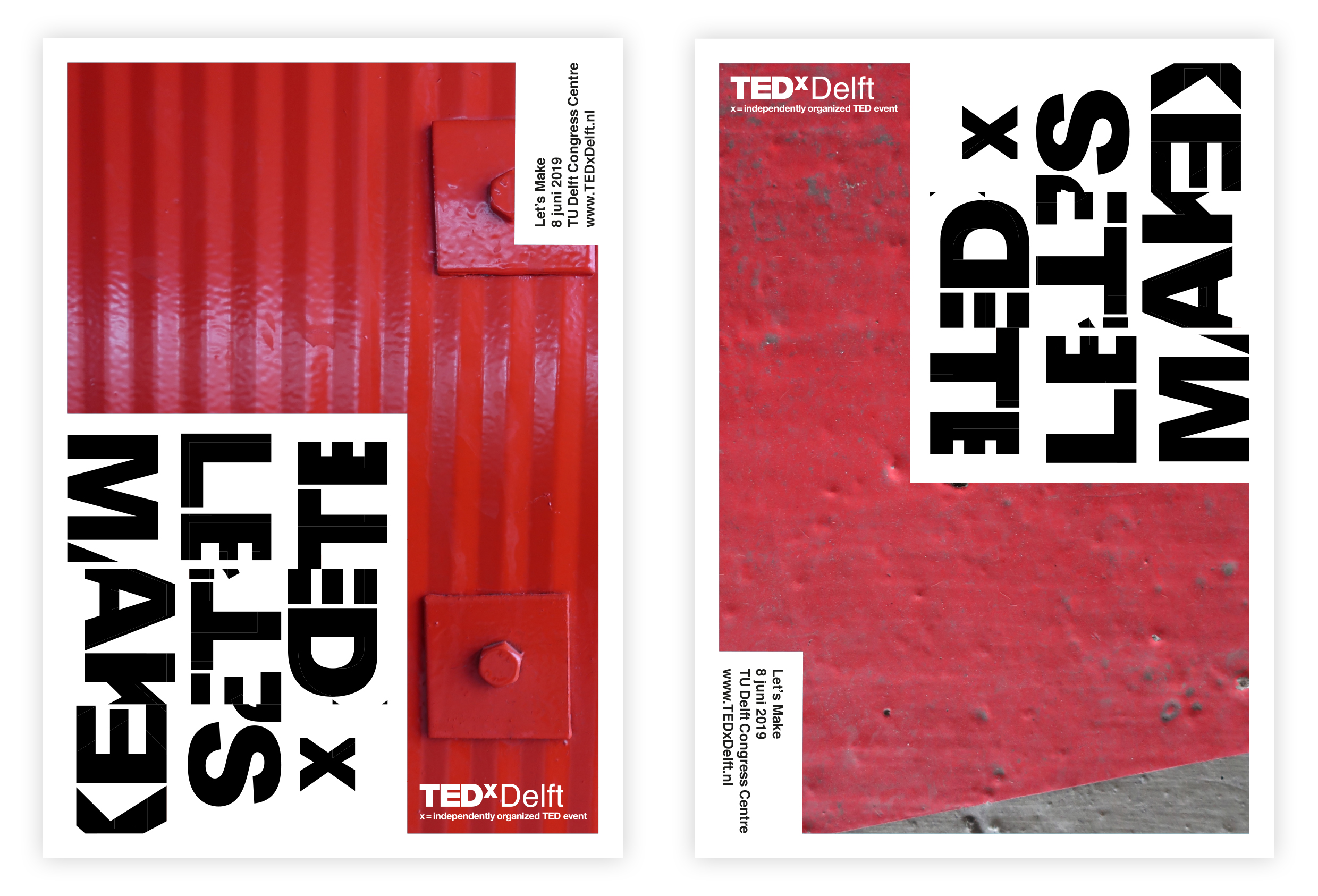 A visual identity for TEDX Delft built around the theme "Let's make" A school project for Avans Hogeschool